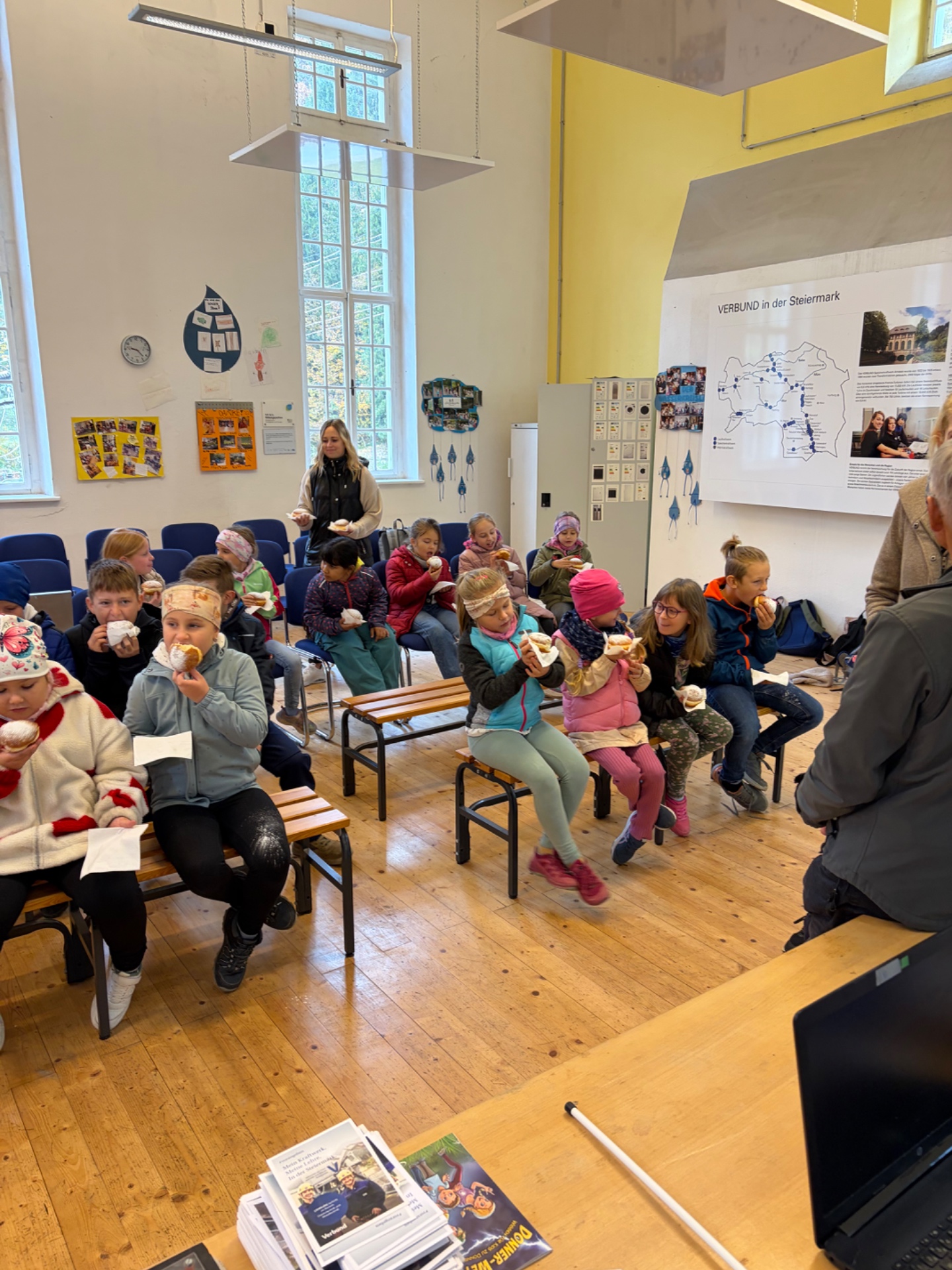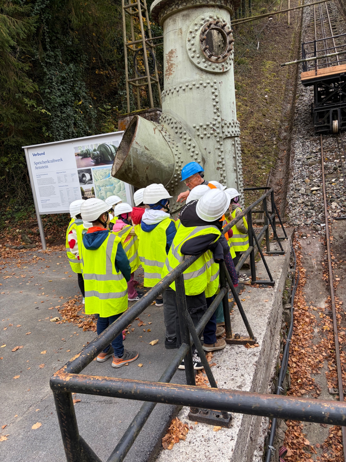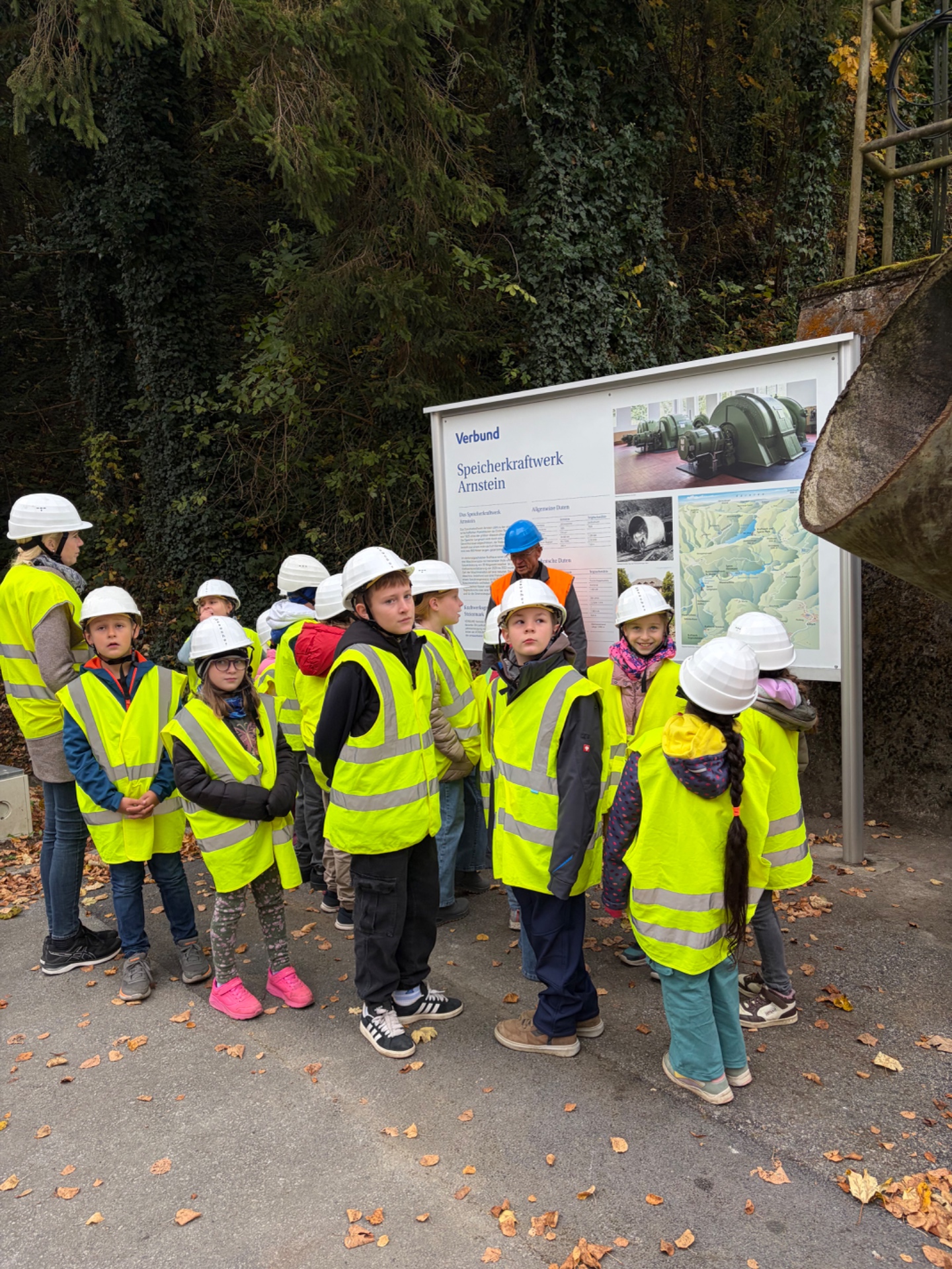 Bei schönem Herbstwetter starteten die Schüler*innen um 8:00 Uhr zur Bezirksrundfahrt. In einer Führung im Kraftwerk Arnstein lernten sie anschaulich, wie Wasserkraft Strom erzeugt; als Belohnung gab es einen frischen Krapfen. Weiter ging es zur Bezirkshauptmannschaft Voitsberg mit Einblicken in die Behördenarbeit; ein Fußmarsch über den Sagenweg zur Burg Voitsberg und die Rückfahrt mit dem Bus rundeten den ereignisreichen Tag ab.