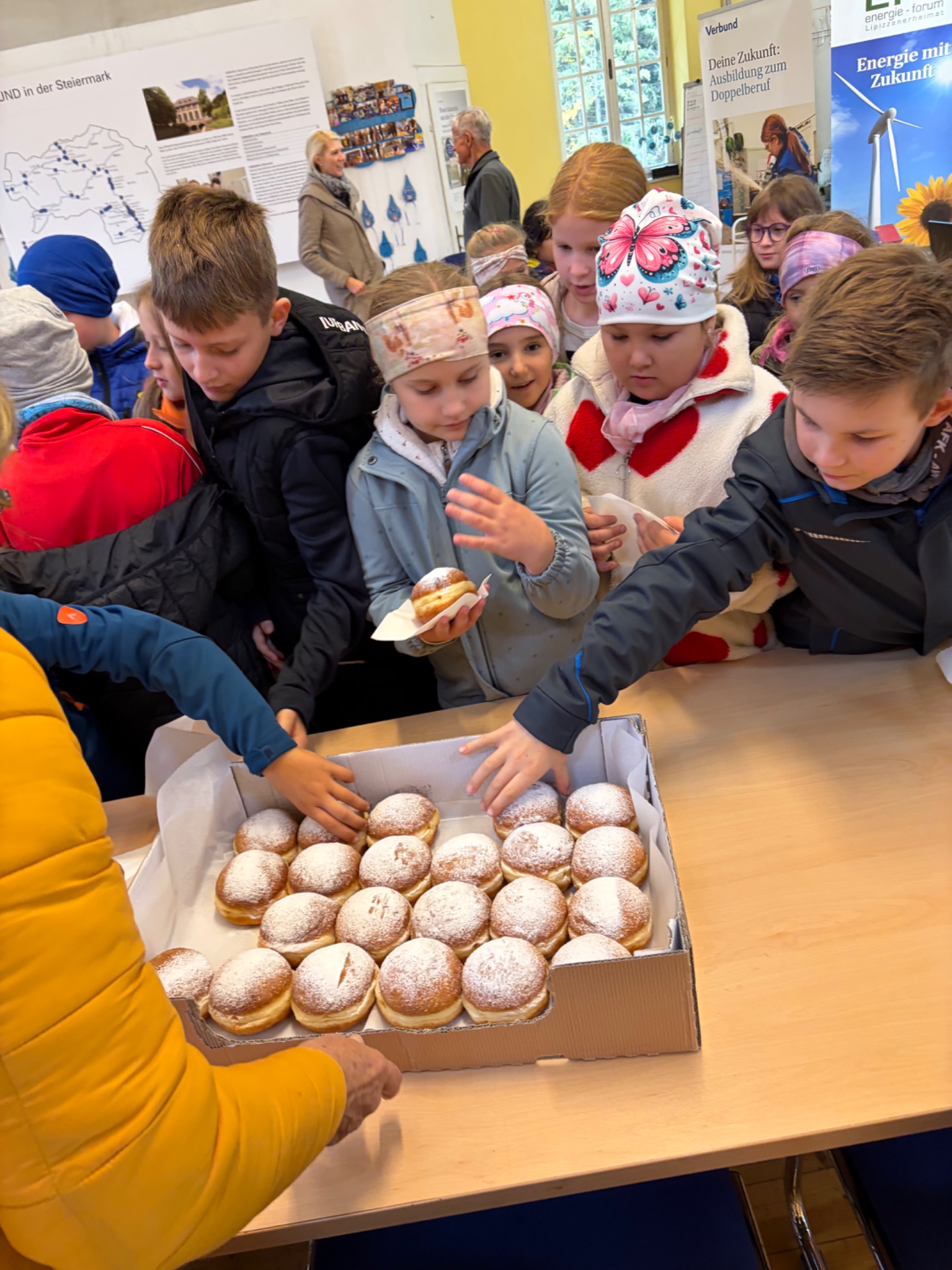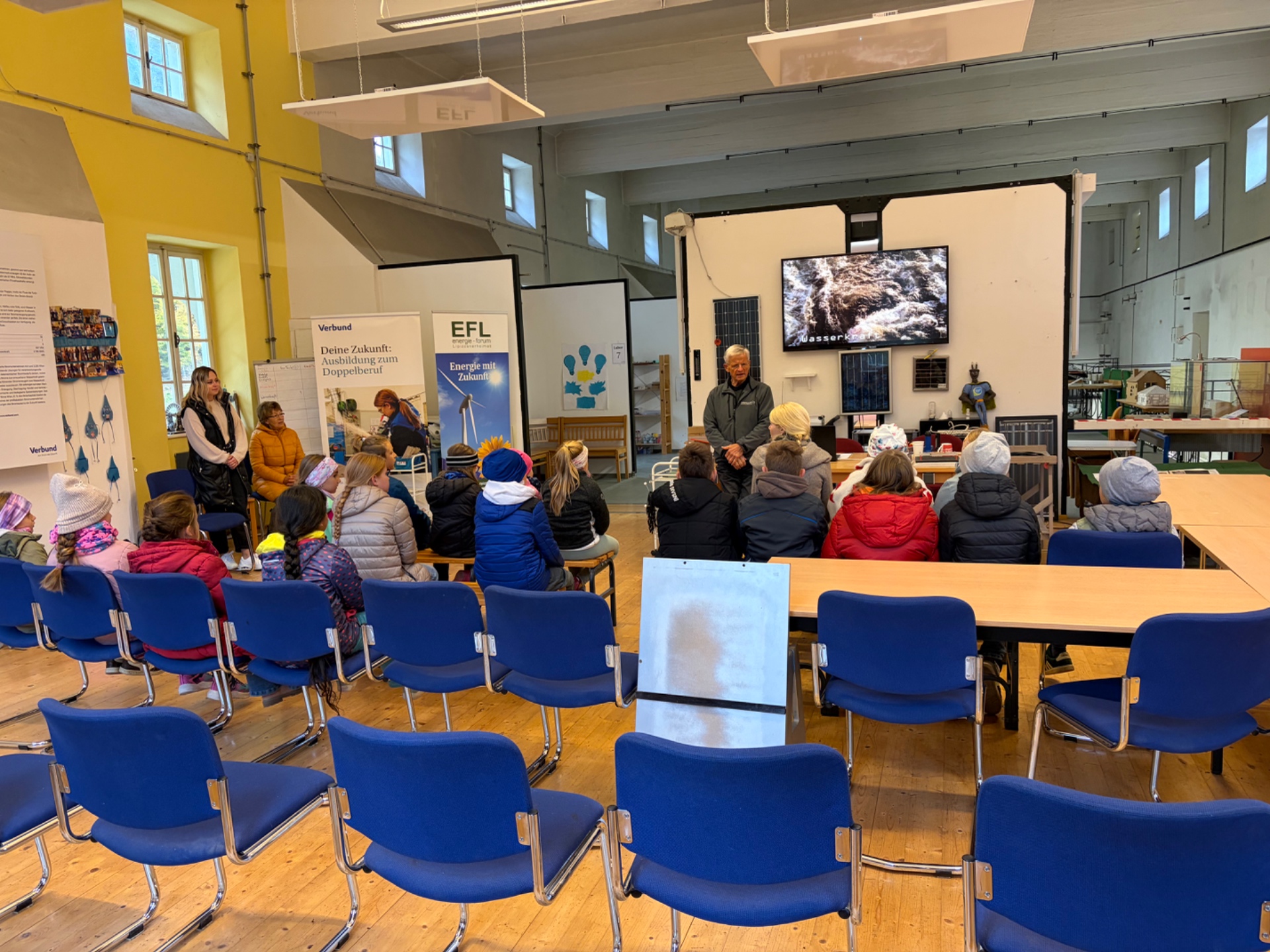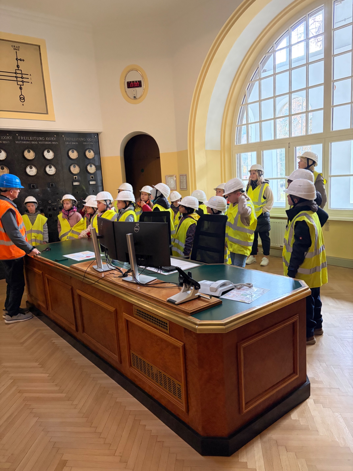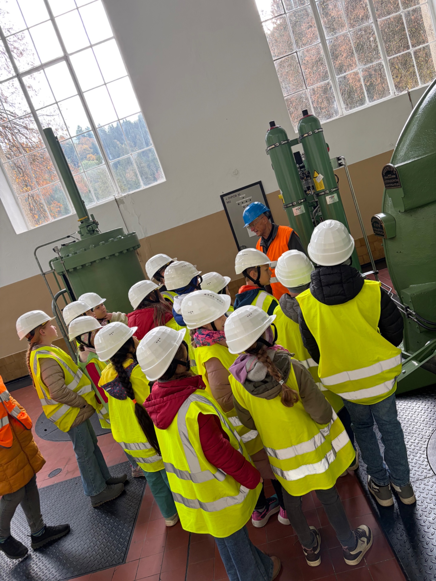 Bei schönem Herbstwetter starteten die Schüler*innen um 8:00 Uhr zur Bezirksrundfahrt. In einer Führung im Kraftwerk Arnstein lernten sie anschaulich, wie Wasserkraft Strom erzeugt; als Belohnung gab es einen frischen Krapfen. Weiter ging es zur Bezirkshauptmannschaft Voitsberg mit Einblicken in die Behördenarbeit; ein Fußmarsch über den Sagenweg zur Burg Voitsberg und die Rückfahrt mit dem Bus rundeten den ereignisreichen Tag ab.