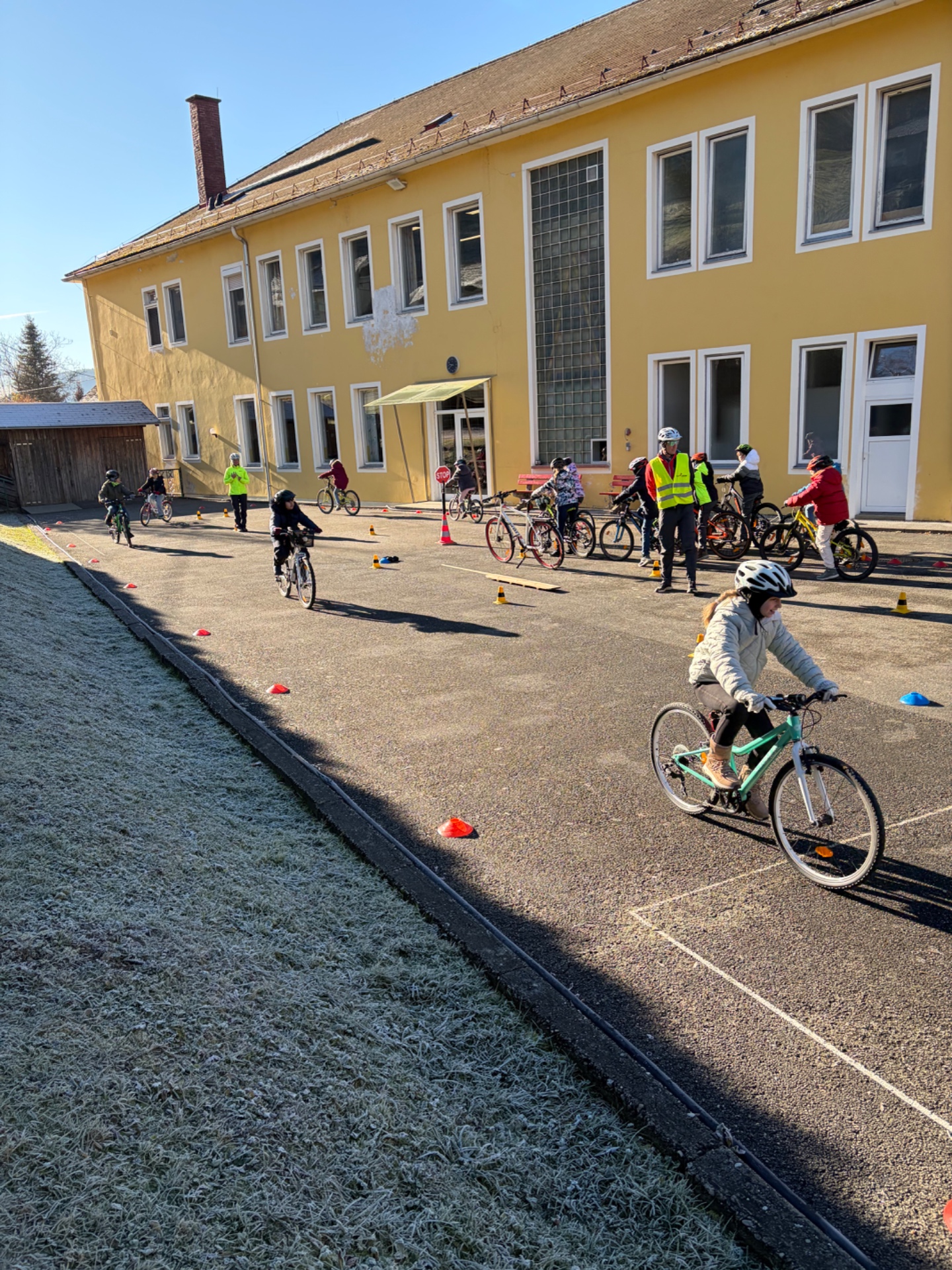 Am Freitag fand trotz des kalten Wetters unsere klimaaktiv mobil Radfahrsicherheitsschulung 🚴♂️❄️ statt, an der alle Klassen der 1. bis 4. Schulstufe teilnahmen. Nach einem kurzen, spannenden Theorieteil ging es direkt in den praktischen Abschnitt, wo am Parcours fleißig geübt, gelacht und ausprobiert wurde 🎯🚲. Für die 4. Schulstufe stand außerdem eine kleine Ausfahrt in Afling auf dem Programm, die für richtig viel Abwechslung sorgte 🌟.