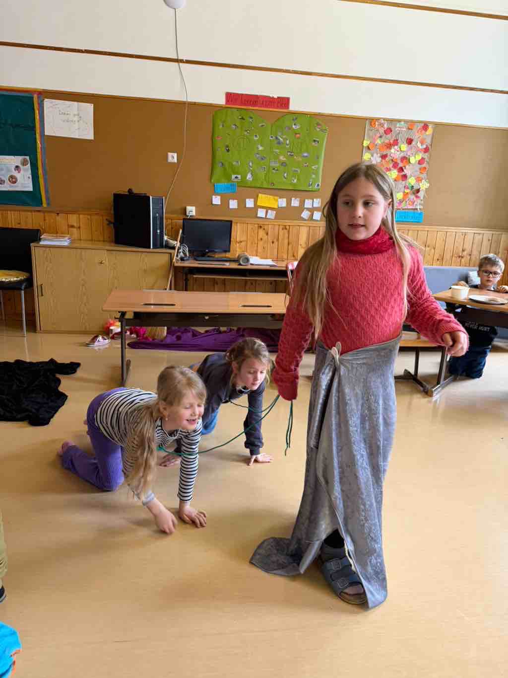 Mit großer Begeisterung schlüpften die Kinder in unterschiedlichste Rollen: Es gab einen Bauern, einen Bäcker, einen Polizisten, mehrere Hunde, Verkäuferinnen und noch viele weitere Figuren, die gemeinsam das Dorfleben gestalteten. Mit viel Fantasie, Kreativität und Spielfreude entstanden spannende Szenen und lebendige Begegnungen.