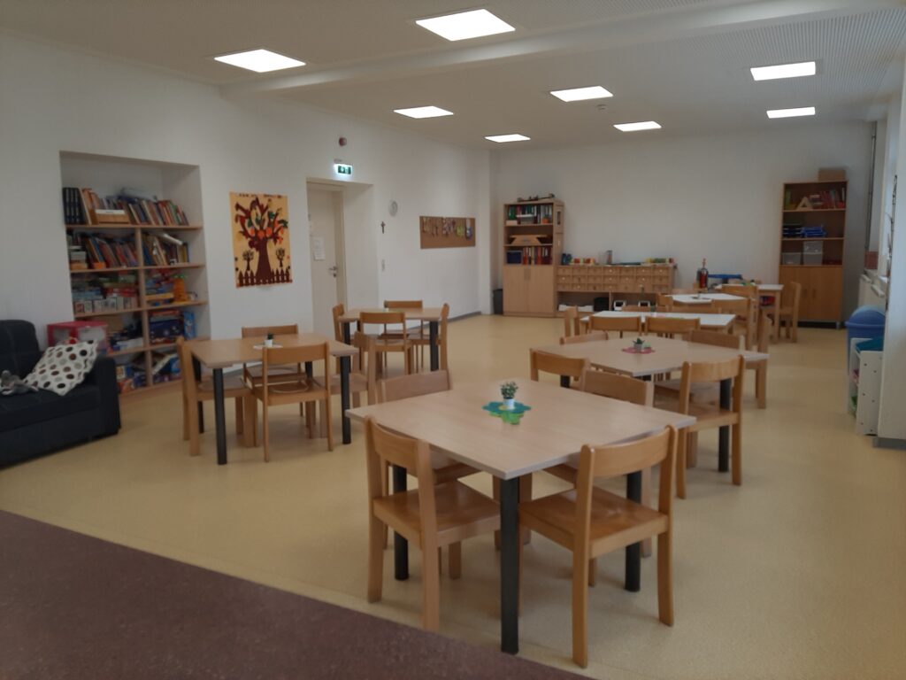 Hier kann Ihr Kind zu Mittag essen, die Lernbetreuung mit LehrerInnen der Schule, sowie die Freizeit mit diversen Spielen, Mal- und/oder Bastelmaterialien nutzen.